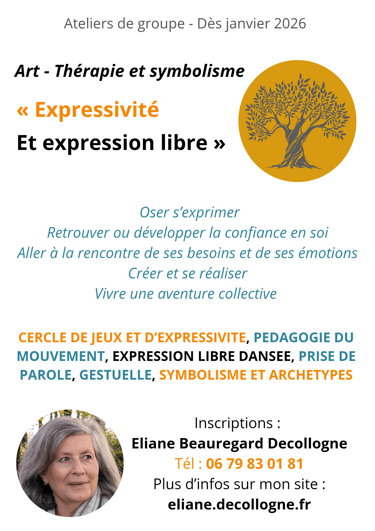 Créés à partir de 30 années d’expérience et de formations, ces ateliers se veulent re-structurants et apaisants. La recherche d’équilibre personnel, et le besoin d’harmonie sont les principales motivations pour rejoindre un groupe.